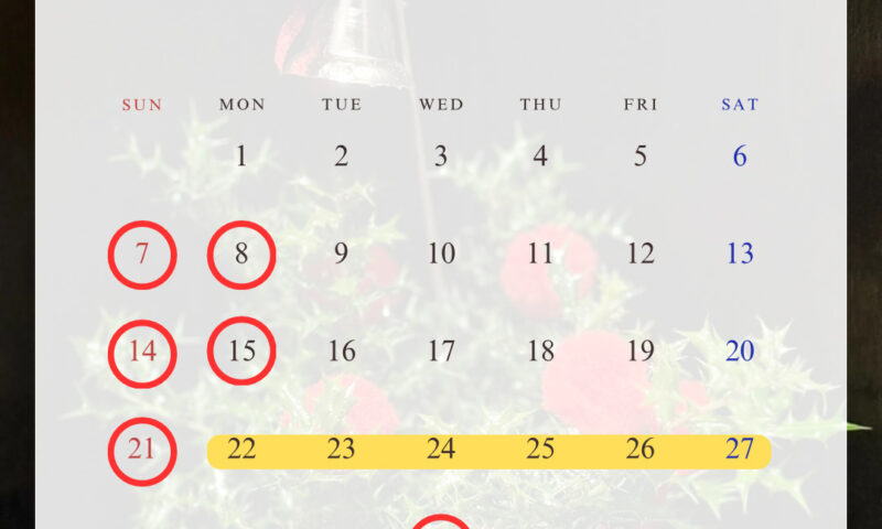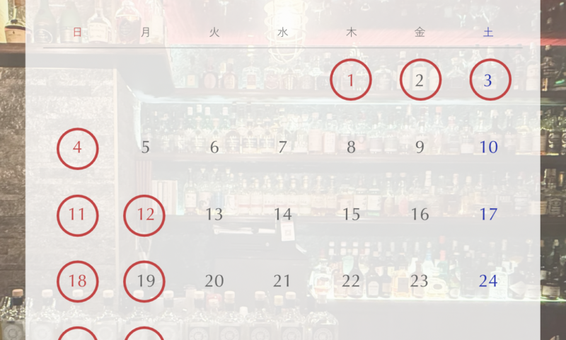 BAR NEIST POINT 1月の営業スケジュールのお知らせ