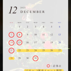 12月のお休みと営業時間のおしらせ